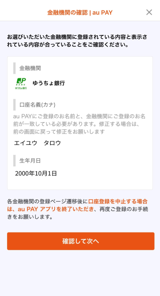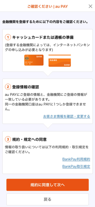 ※ローソン銀行ATMで「確認番号」の払出を行ってから、au PAY アプリでの口座登録を行ってください。